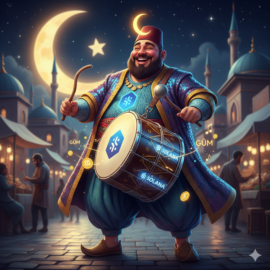 "Bizim Davulcu, eskiden mahallede düğün dernek koşturur, en hızlı tokmağı o sallardı. Ancak bir gece ayı piyasası gelip tüm birikimini süpürünce, o da pes etmedi! Davulunu blockchain teknolojisiyle modifiye etti, tokmağına akıllı kontratlar bağladı. Şimdi her vuruşta mahalleliyi 'moon' vaktine uyandırıyor!"